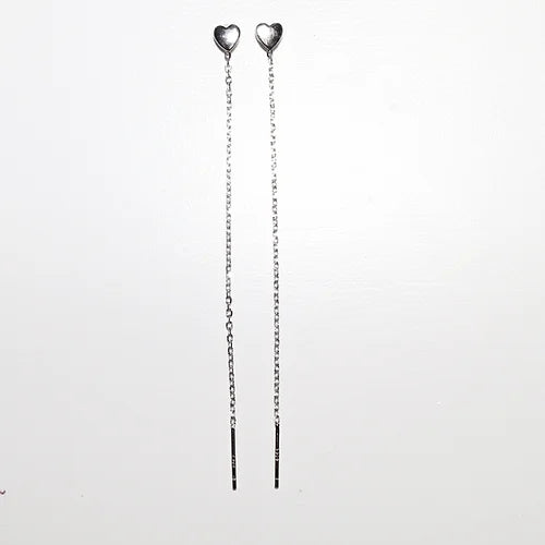 Aretes Largos corazón Plata .925 baño Rodio