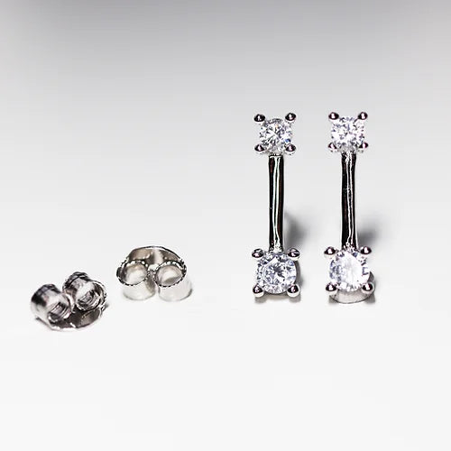 Aretes Barrita Ch Cz AAA Plata .925 baño Rodio