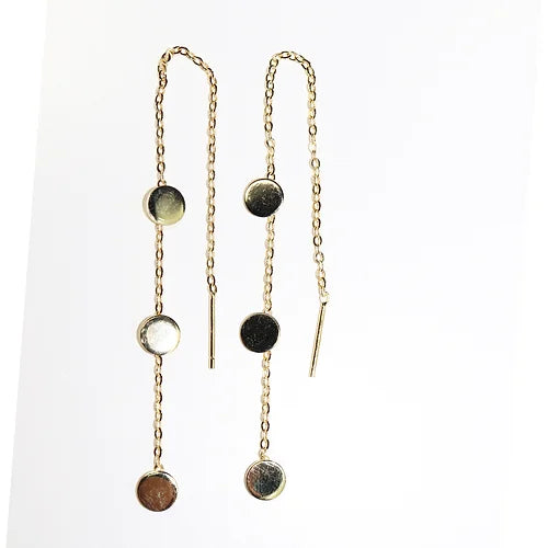 Aretes Largos 3 círculosPlata .925 baño Oro