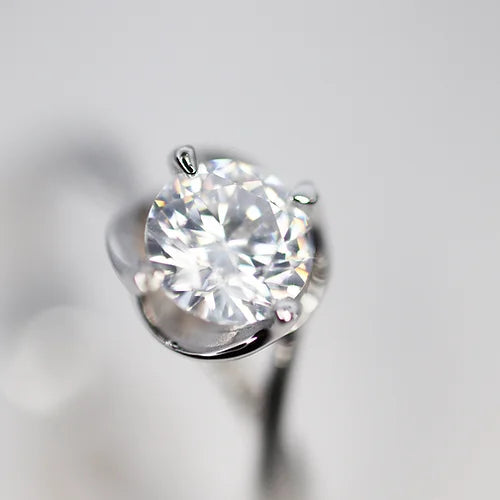 Anillo Solitario Plata .925 baño Rodio Zirconia Calidad AAA