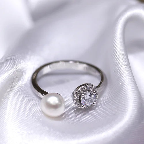 Anillo Perla Natural Cultivada Plata 925 baño Rodio